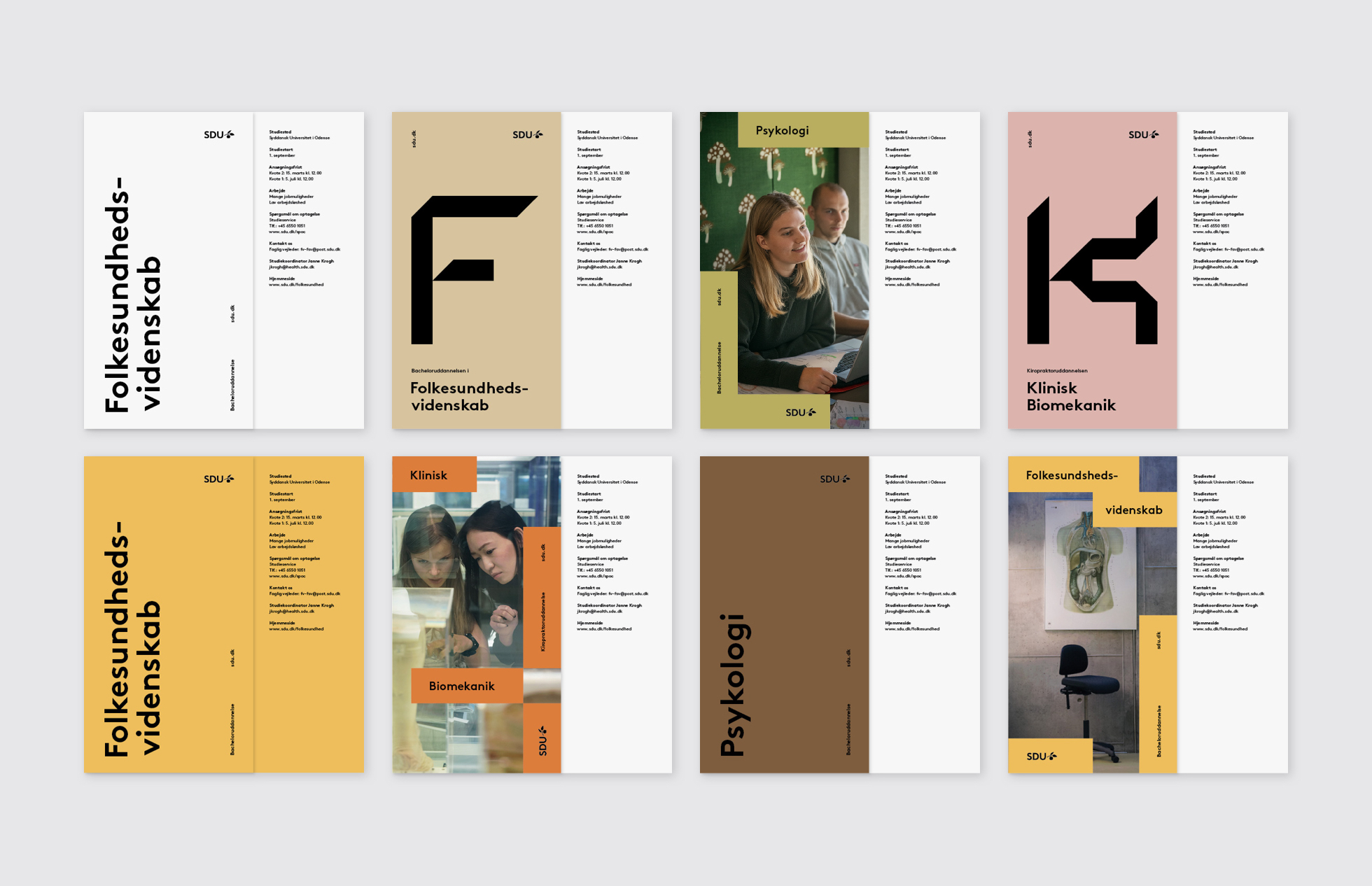 In addition to black and white, the SDU colour palette consists of eight colours inspired by the life cycle of the apple tree from seed to ripe fruit.